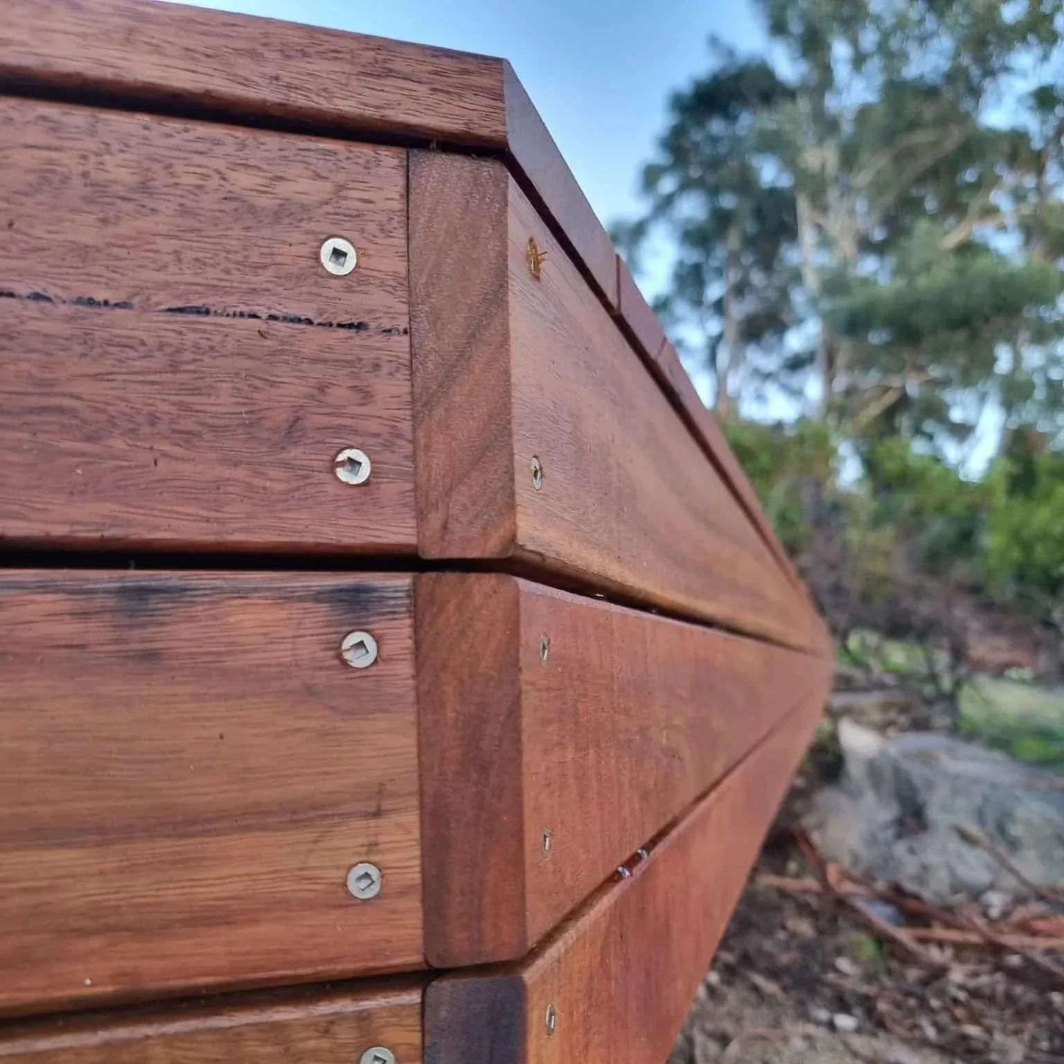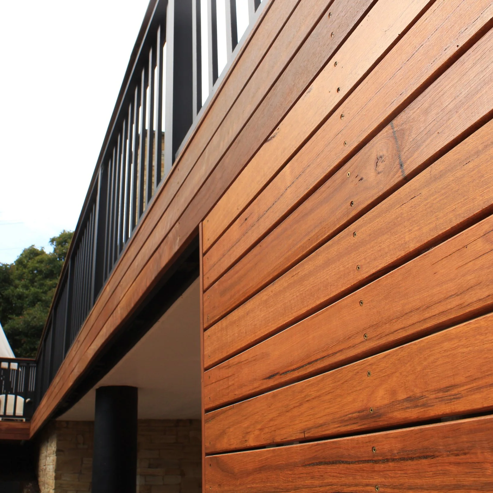 Spotted gum, stainless steel fixings, decking.